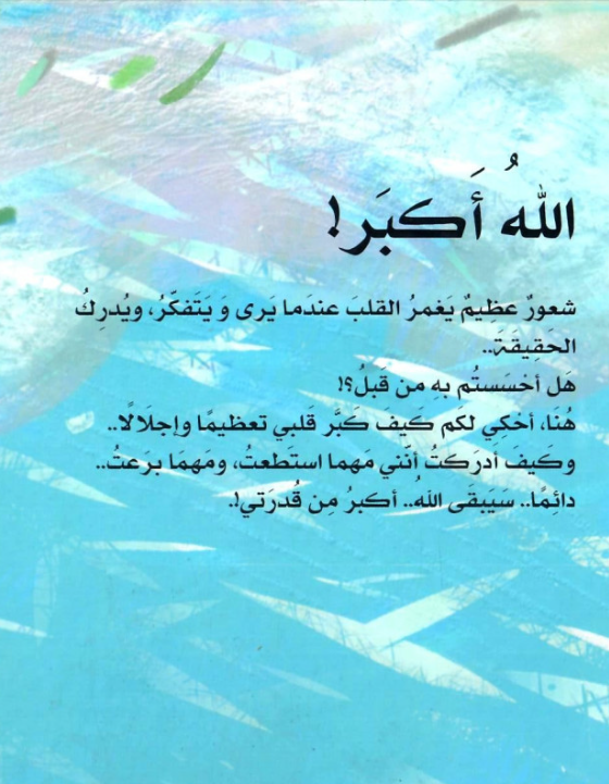 شعور عظيم يغمر القلب عندما يرى و يتفكر, و يدرك الحقيقة... هل أحسستم من قبل؟! هنا أحكي لكم كيف كبر قلبي تعظيما و إجلالا... وكيف أدركت إنني مهما استطعت , ومهما برعت,,, دائما .. سيبقى الله.. أكبر من قدرتي!